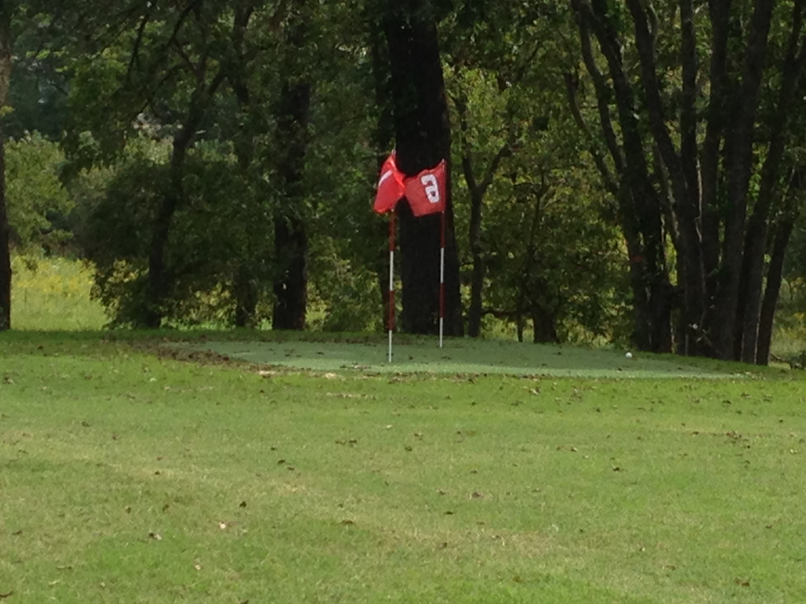 Golf balls litter our course like orphaned Easter eggs. There is a bucket of balls sitting on the first tee and I’ve noticed my Dad and Mom and Karen whacking shots from the first tee to points distant. They hit balls with corporate logos, balls beaten into shapes more closely resembling eggs, neon lime balls and balls so old they’ve weathered to a dusty tan, creased and beaten within an inch of their life. Guess I need to hire a range boy to shag the balls. They say the world is round and those behaviors spun out into the orbital cosmos somehow return to you like loony carrier pigeons. Thus the golf balls that litter our little course return to me since I’ve hit countless balls out into the dusk, off cliffs and bridges, into woods and waving corn fields, and over rivers and streams, all for the sheer joy of hitting a ball to watch it soar. I never hit them intending to find them, but they’ve returned unbidden. Brae Burn 1 Green
