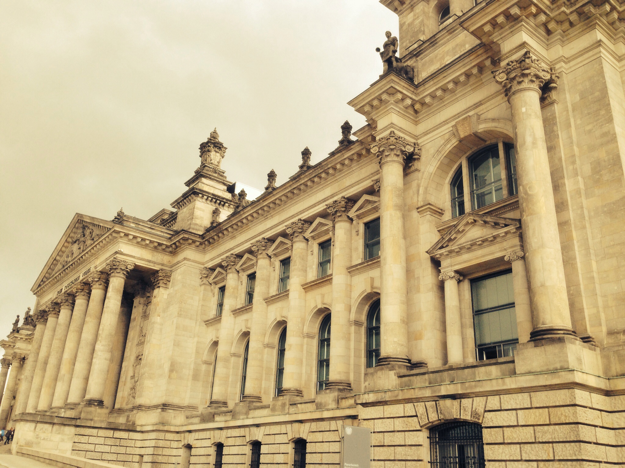 Then, pretzels from a street vendor, some with white cheese and some with salt, a five minute walk to the Central train station, passing the Reichstag (parliament) building.
