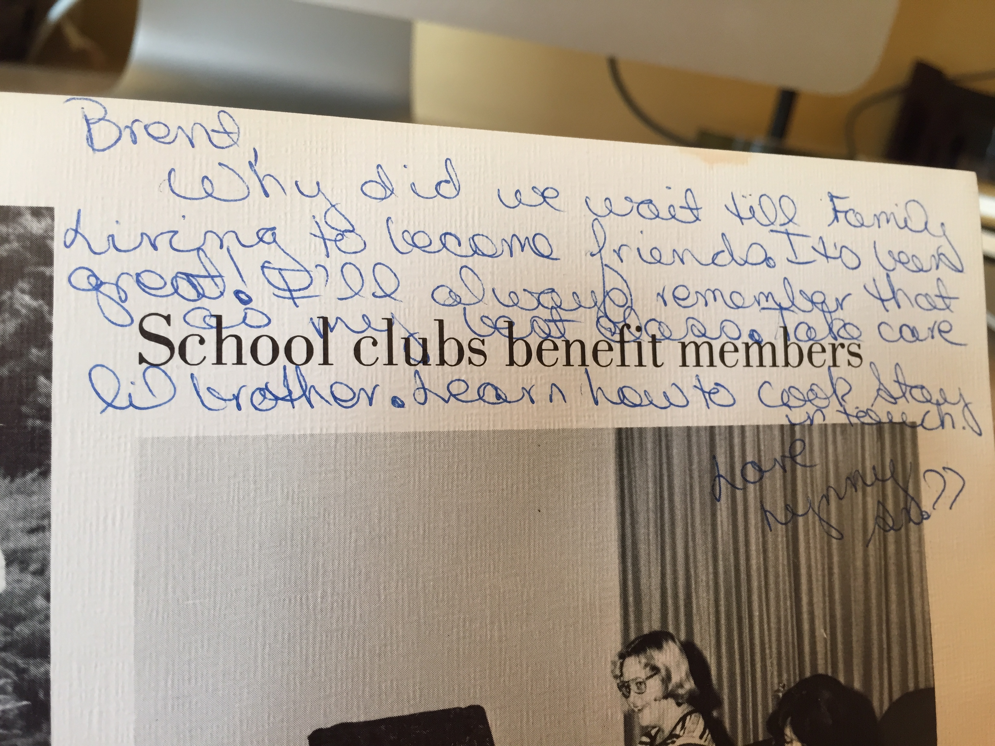 Mrs. Smith seemed to be everyone’s favorite teacher. There was something about her classroom that made it ok to be irreverent, silly, to wear your shirt inside out so that the spiders were in view, and to understand and know people beyond your tight circle of friends. I don’t remember ever speaking to Carol Lynn Creel before I became her “little brother” in Mrs. Smith’s class. She was beautiful and a pom girl and I was the golfer with unkempt hair and Sansa-belt slacks who sometimes wore a shirt inside out not on purpose. But somehow we became friends inside the refuge of Sue Smith’s class.