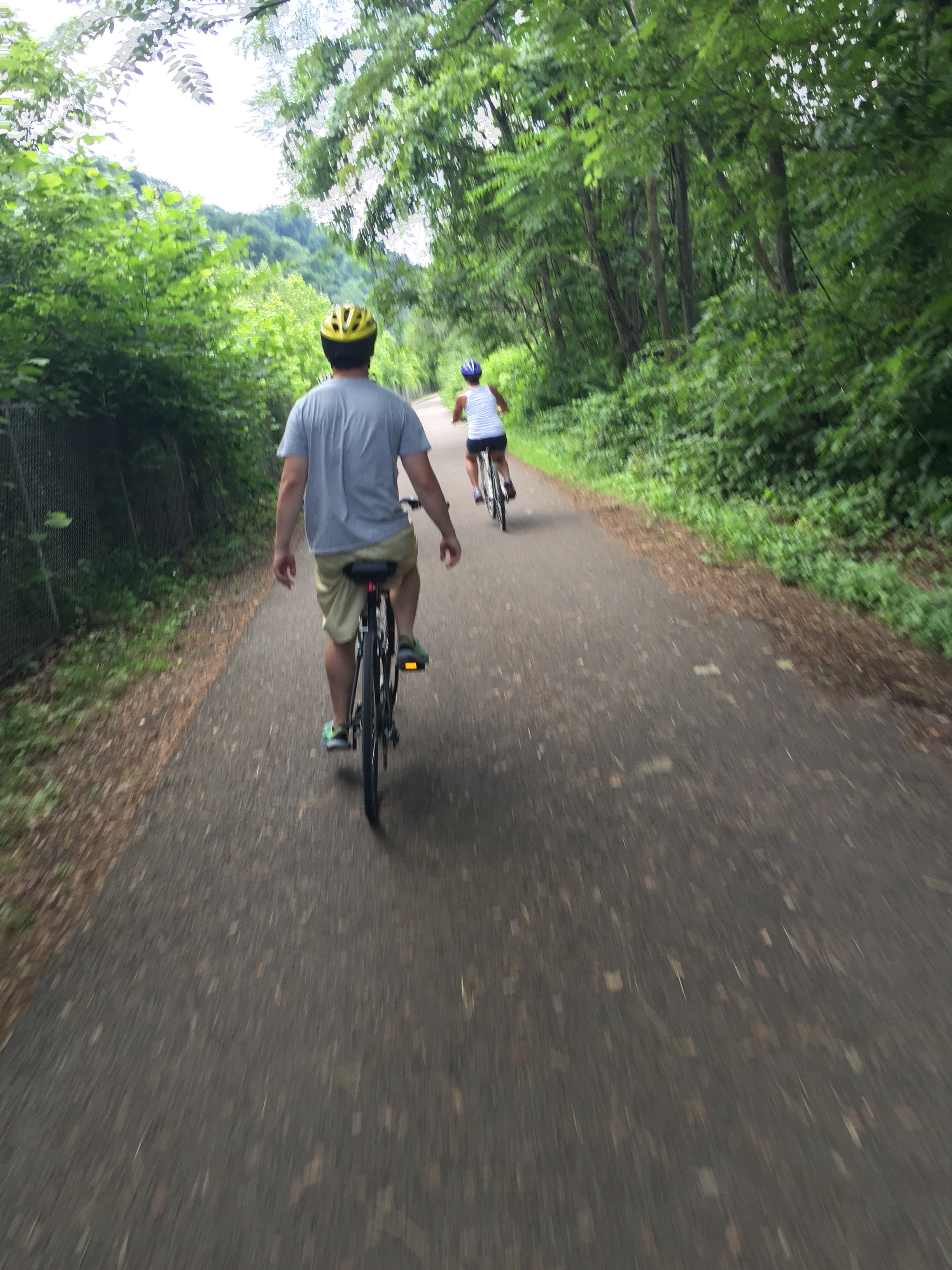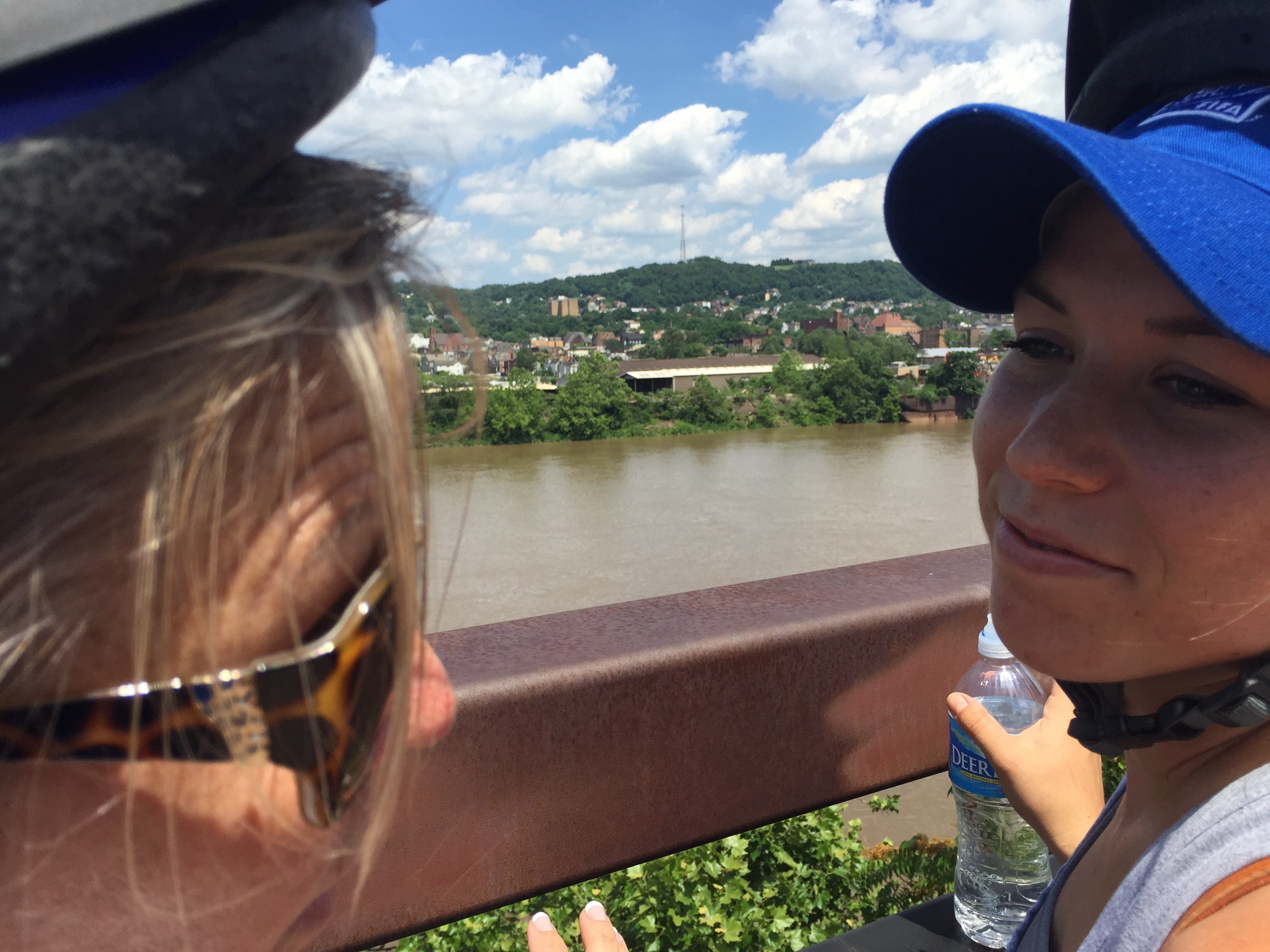 We took several breaks on our 22 mile bike tour on the Allegheny Trail which is built on an old railroad bed. If we had kept pedaling, we would have landed in Cumberland, Maryland 150 miles east.