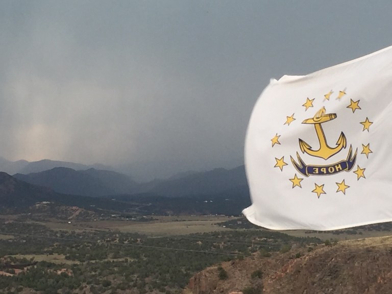 State flags line the bridge deck. Guess which one this is? The answer underneath the next picture.
