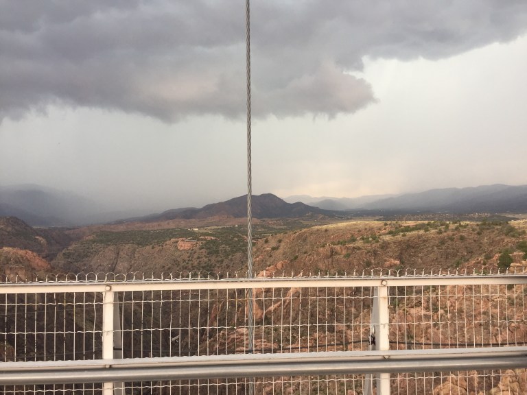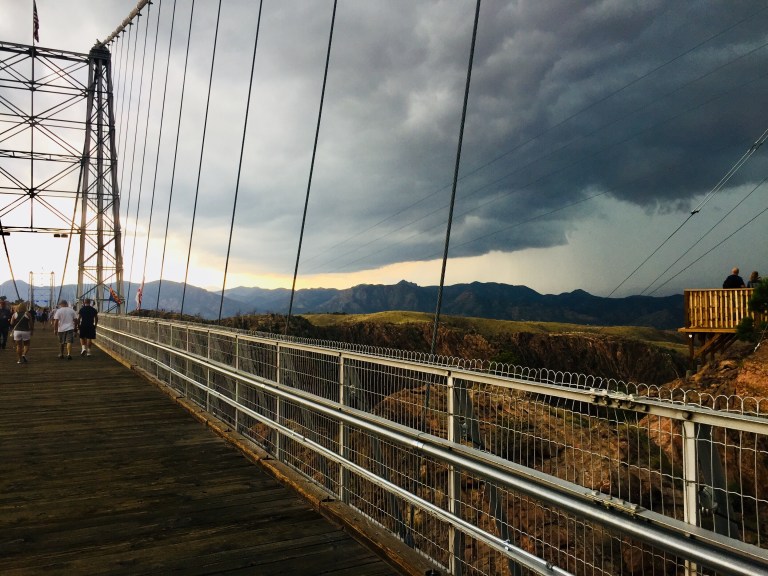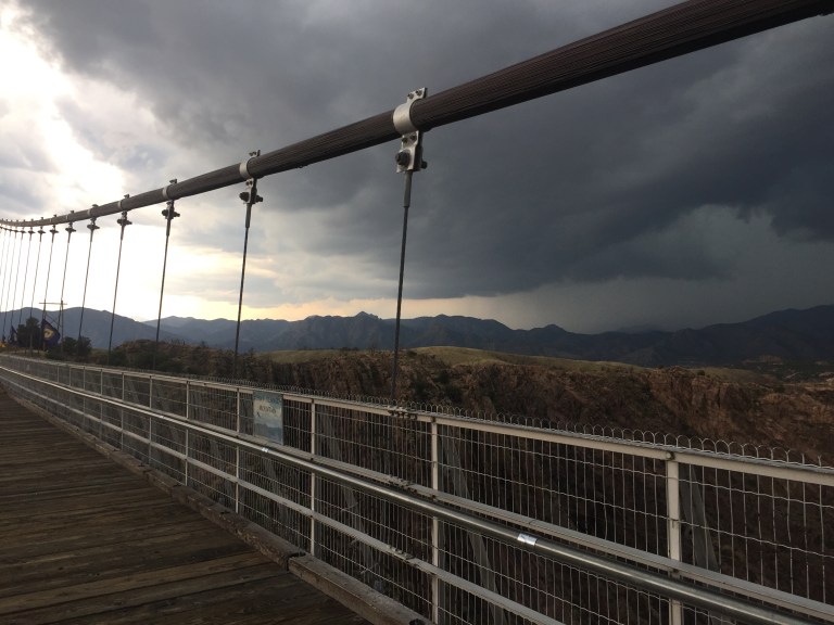We crossed the Royal Gorge Bridge motivated by bolts of lighting. We alternated between fear and awe, running and stopping to take pictures as sheer energy swept down the mountain.