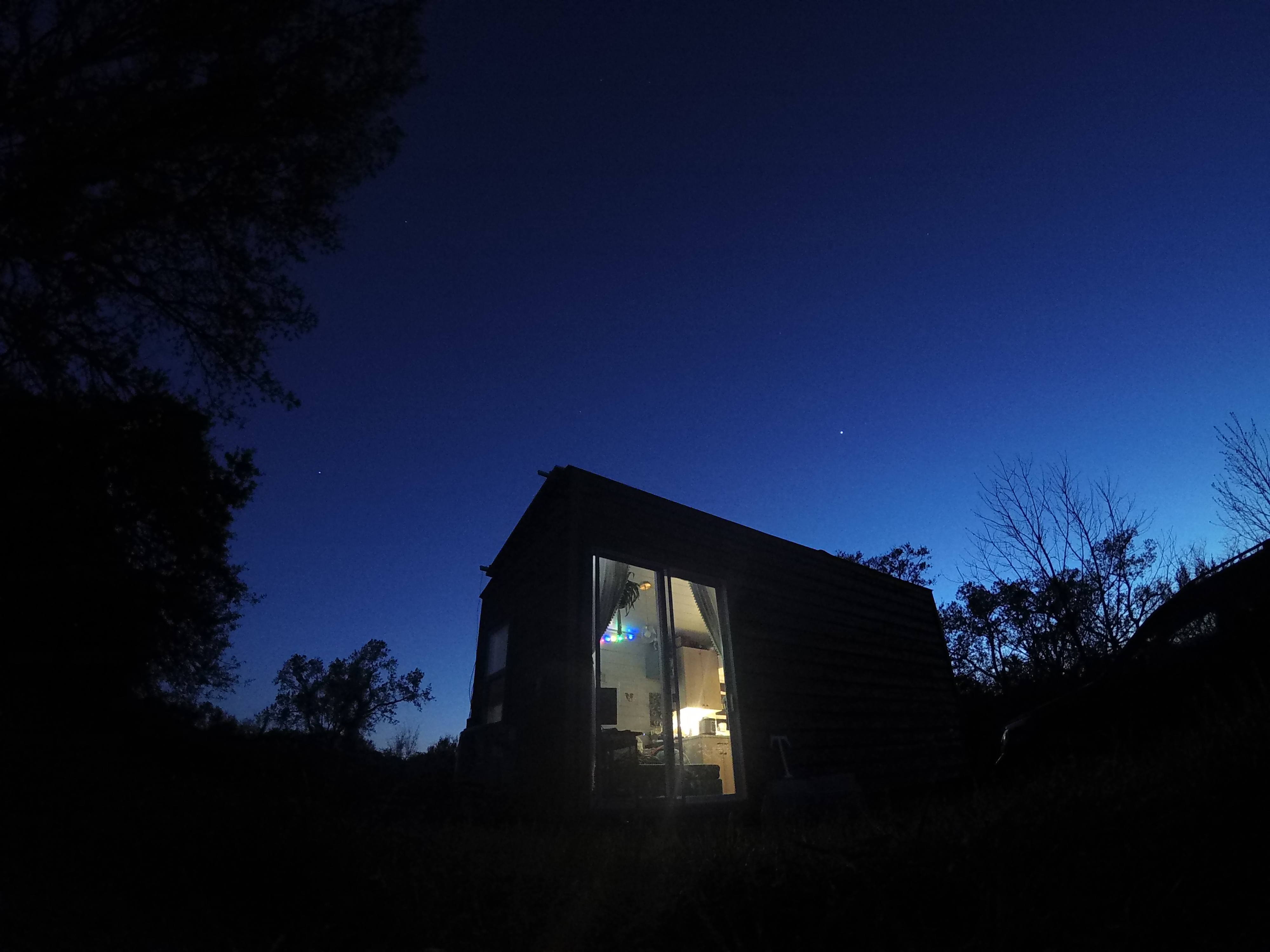 Brandon, Liz, and Inola (the dog) and their view: tiny home east of Norman a few days ago