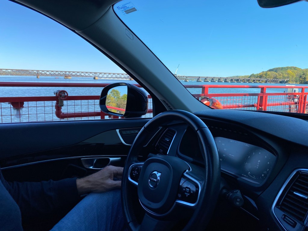 we followed a monkey hanging on a cage on a concrete truck as we neared Lake Michigan and Port Washington