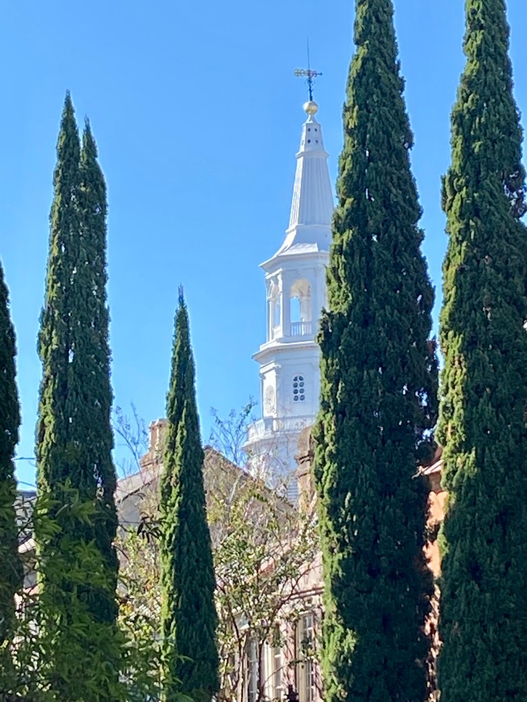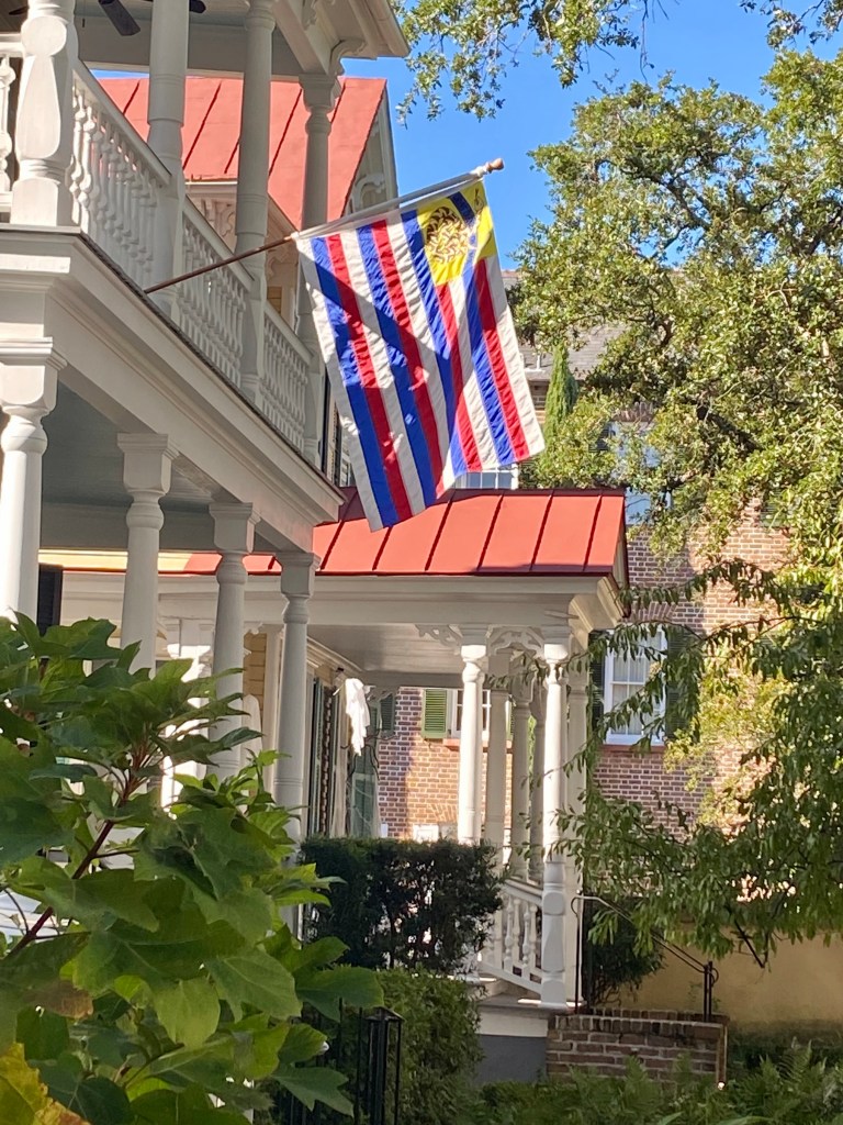 We ate here at 82 Queen. These walls date back to 1600’s, originally part of walled town square. Low country cuisine fried green tomato and bourbon ham.sandwich and tomato pie. Yum. Stumbled onto a funeral at a really old Presbyterian church Walking along Church street towards the harbor Residence on Church street Live oak alongside antebellum homeGeorge Washington visited this street during his presidency Trees and steeples share a majestic orientation Oak trees grow into sidewalks and structures Slavery shipping was outlawed in 1808 but trading still happened on streets and gathering places like the Market which is now a museum. We spent time in a museum on the site that once housed a slave trading market. Much of the wealth of this beautiful place called Charleston, was built through the sweat blood and power of black slaves. Standing in that old building that once housed a marketplace for buying and selling human beings as nothing more that investments and property, often splitting families apart forever, husband from wife, mother from child, made me want to weep. Example of cobblestone streets in old townThe museum where blacks were sold after Charleston passed a law prohibiting street sales of slaves. Charleston was supposedly too genteel to allow such a street spectacle so it was moved inside to places like this Mart which housed the museum we toured. German fire company next door to the slave mart. Pastel town homes
