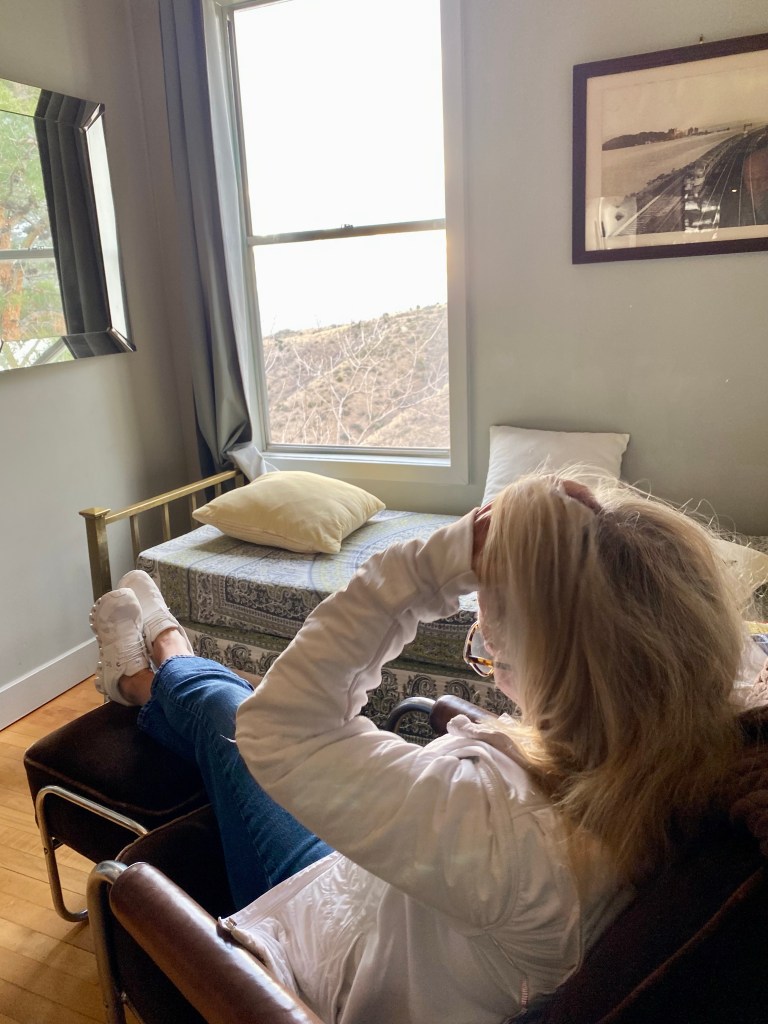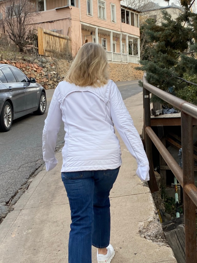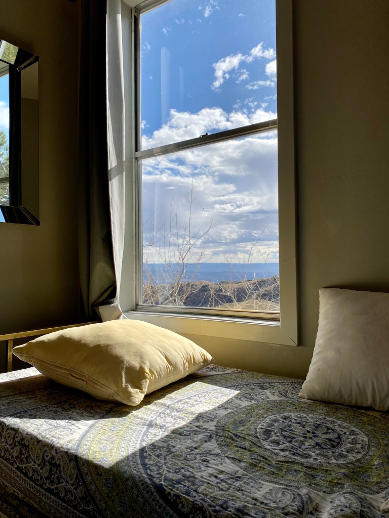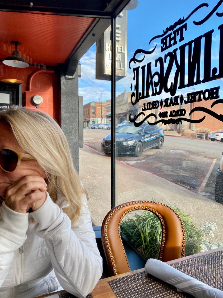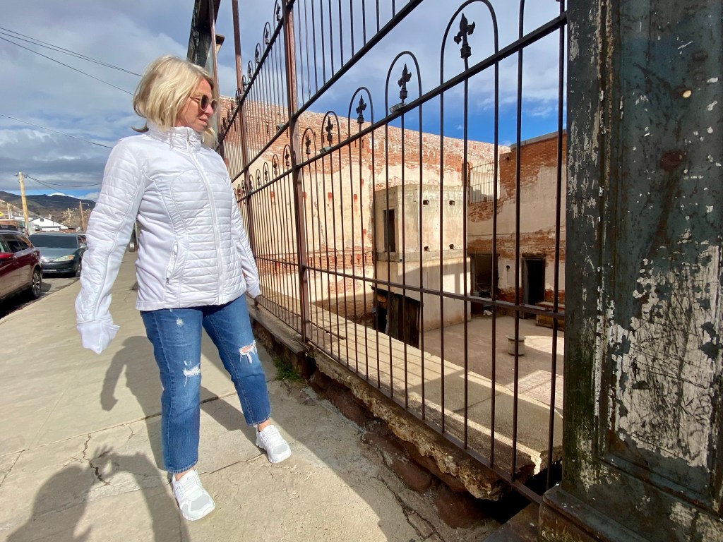 3rd row watched one of the most exciting pickleball matches ever as J W Johnson and Jorja Johnson defeated Anna Lea Waters and Ben JohnsJerome, AZ. Serendipitous Airbnb stay at the mayor’s house which looked out east over the valley. Jerome is an fascinating old mining town re-discovered by hippies and artists and restaurateurs. 15,000 people lived here until 1929 and after the mine closed in 1953 the population dwindled to 100 in the Sixties. Now they claim over a million visitors annually. Remarkable! Dinner at Mariposo Latin restaurant overlooking red rock country Window view from the mayor’s house looking east towards Sedona 25 miles distant Same window morning viewJerome is a once abandoned mining town with rather random city planning Karen enjoys our east view from the living roomAll streets and walks are sloped and buildings carved into the mountain sideA lower tier of Jerome Breakfast at Clinkscale Cafe delicious Karen the history buff wandering Jerome Karen is looking down on a collection of water closets passing tourists try to fill up with coins by tossing them down between the bars Hiked up Secret mountain started in red dirt and transitioned to snow halfway upHiking More hiking