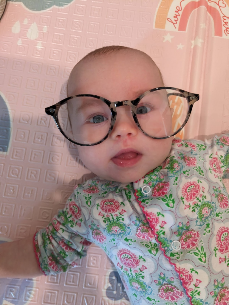 My granddaughter, Holland, seeing life through the lenses of her Keke’s reading glasses.